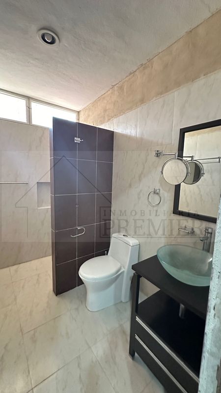 Recámara principal con aire, ventilador, baño completo con tina, vestidor, área de estudio y terraza.